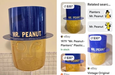 Item # AC3 - 1979 Mr. Peanut plastic bucket measuring 18" tall x 13" wide